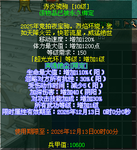 *荧光字、黄字部分属性在非乘骑状态下仍会生效。