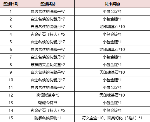 活动内容:活动期间大侠每日登录游戏,可以通过屏幕右侧活动签到按钮进行签到,领取海量签到奖励,购买马到成功·礼卡激活还可获得额外奖励!