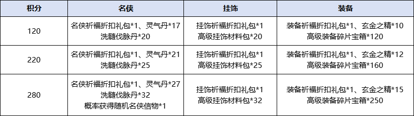 4. 2月25日0:00 - 3月4日24:00期间,祈愿值达到一定值的大侠,可前往新春大使处领取祈福奖励,祈愿值越高,解锁的奖励档次越好(每档奖励皆可领取一次)
